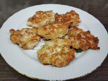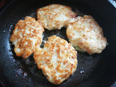 На сковороде разогрейте растительное масло. Ложкой выложите массу на сковороду в виде котлеток. Обжарьте курицу на среднем огне до румяности.