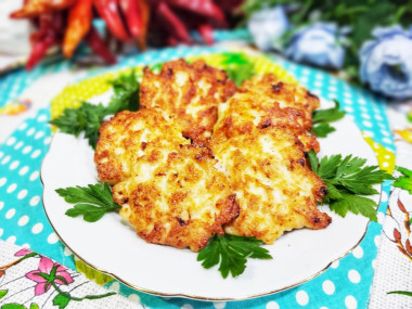 Мелко порезанное филе соединила с остальными ингредиентами и хорошо. перемешала. Обжарила котлетки с двух сторон.