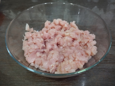 Куриное филе помойте, хорошо обсушите. Нарежьте филе мелкими кубиками.