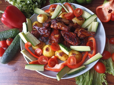 Если внук остался доволен – значит, успех на все 100%! 😍🎉 Запечённый картофель и свежие овощи – идеальное дополнение, так что подача у вас получилась безупречной!