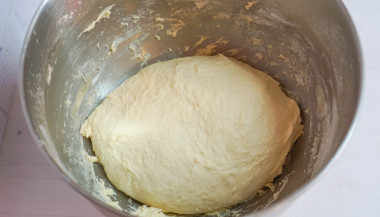 У меня в холодильнике оставалось немного кислого молока, а в планах было приготовить что-нибудь из выпечки. Полистав рецепты на сайте, решила приготовить дрожжевое тесто на кисло молоке и спечь из него большую пиццу. Молока у меня было 370 мл, поэтому при помощи калькулятора на сайте, рассчитала объем остальных ингредиентов для этого количества молока. Муки у меня ушло на тесто 600 грамм. Тесто вымешивала при помощи планетарного миксера. Затем чашу миксера накрыла полотенцем и поместила в теплую духовку на час, чтобы тесто подходило. За час тесто хорошо подошло и увеличилось в объеме примерно в 2,5-3 раза. Тесто получилось очень воздушным, эластичным и мягким. Из него получилась отличная вкусная пицца! Спасибо автору за рецепт!