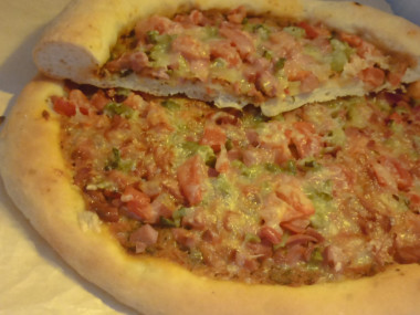 Спасибо большое за рецепт! Очень вкусно, просто получается! Раз десять готовила, уже на глаз сыплю муку смотря на желаемую консистенцию. Из этого количества 3 пиццы сформировала. Начинка стандартная: марин. Огурцы, колбас. изделия, сыр, помидоры, соус. И пирожки выпекаю с разной начинкой , тесто мягкое и на следующий день.