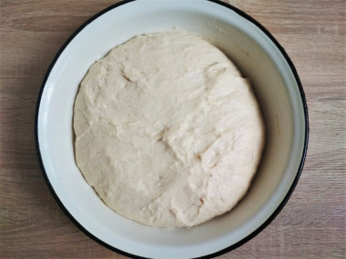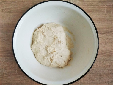 Таким образом замесите дрожжевое тесто. Оно немного будет липнуть к рукам. Поставьте готовое тесто в теплое место и накройте полотенцем. Дайте тесту подойти в течение часа.