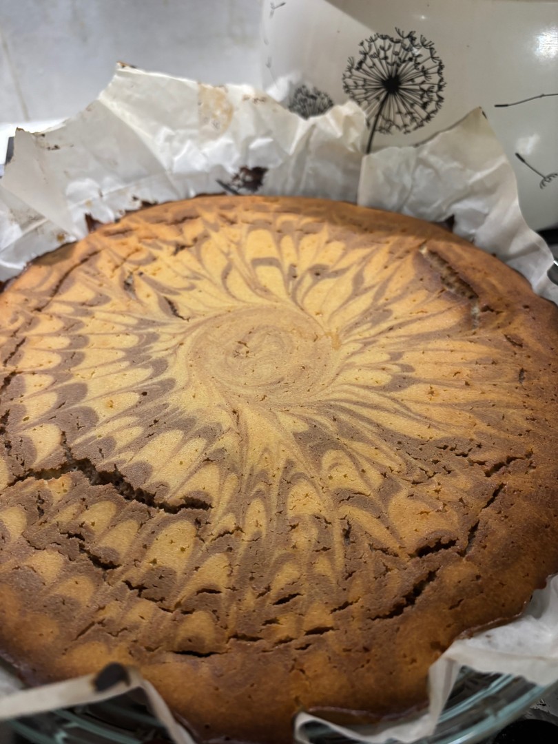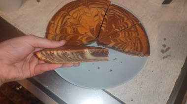 правда неравномерно разделила тесто и коричневых полос больше)но на вкусе это не отражается)