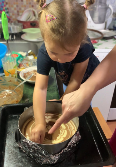 Моя вторая в жизни зебра. Впервые я торт Зебра в духовке на кефире лет 9 назад. В этот раз мы готовили вместе с дочкой. Читая описание рецепта, почувствовала в нем столько заботы и тепла. Автор с таким трепетом подошла к каждому действию. Напомнила о том, что необходимо вымыть яица, написала как подготовить изюм, как подготовить какао (я раньше сухой сыпала прямо в тесто и, конечно, попадался не промес). Аромат стоял в доме очаровательный