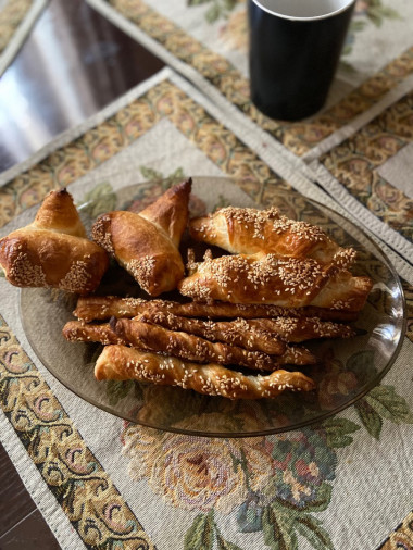 Помимо покупного, вы можете использовать и тесто собственного приготовления. Рецепт домашнего слоеного теста для этой выпечки вы можете выбрать в этом каталоге.