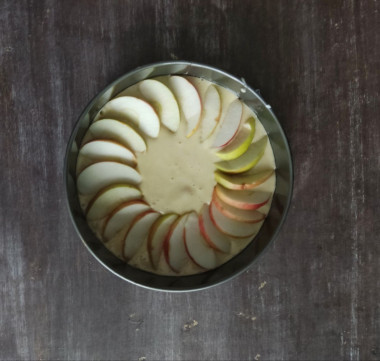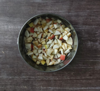 8. Поставьте форму в заранее разогретую до 180 градусов духовку на 40 минут. Шарлотка должна стать золотистой и румяной, готовность проверяйте зубочисткой - сухая, значит пирог готов.