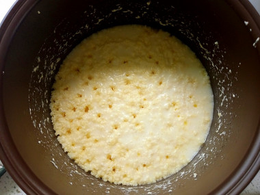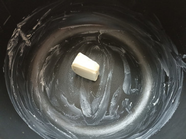 Чашу мультиварки смажьте по бокам и по дну кусочком сливочного масла. Зачем это делать? Это необходимо для того, чтобы кипящее молоко не стремилось вверх и не убежало. Немного масла оставьте в чаше.