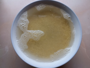 Затем горячую воду слейте, а пшено промойте пару раз в холодной воде.