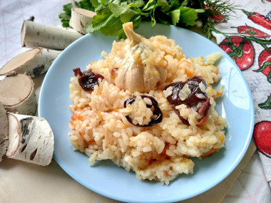 Овощи со специями быстро обжарись и сразу добавила чернослив и промытый рис. Лук я нарезала кубиками, мы его любим, он придает сочности рису. Чеснок заложила сразу, чтобы рис пропитался ароматом посильнее) Плов готовился примерно пол часа, потом дала ему настояться. Получилось отличное второе блюдо, сочное, рис рассыпчатый. Сочетание чернослива и чеснока очень обогатило этот плов. Честно говоря, весь чернослив я съела сама, ну очень вкусный он получился) А дети почему-то не учли, что плов "папин" и без зазрения совести съели его, даже не смотря на отсутствие мяса)) Хорошо хоть одну порцию мужу успела сохранить. Поэтому основываясь на наш семейный эксперимент, советую не проходить мимо этого рецепта, всем рекомендую попробовать!