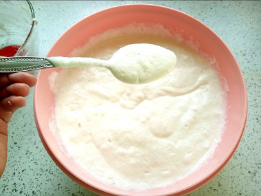 После введения всех белков у вас получится текучее однородное воздушное тесто.