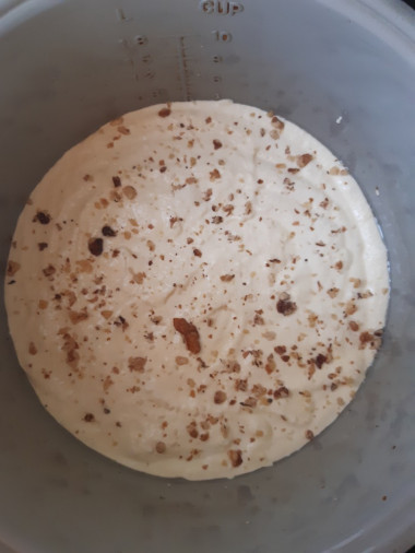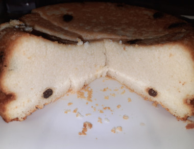 Все продукты для теста я выкладывала в чашу поочередно следуя рецепту. Белки от яиц взбила отдельно с солью и ложкой сахара. Мне показалось, что манки слишком много, но на такую порцию оказалось в самый раз. Кефир у меня был густой термостатный. В итоге тесто получилось жидковатым, но пышным и воздушным. В мультиварке выпекала сначала 65 минут, а потом еще 20 добавила, т.к. творожная масса была сыроватой.