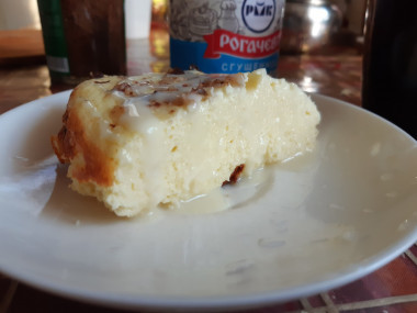 Еще один момент. В описании указано, что запеканку нужно полностью остудить, а потом уже вынимать. Мне не терпелось и я стала вытаскивать ее чуть теплой. Запеканка очень нежная, чуть не сломалась. Поэтому обращаю внимание на этот нюанс!
