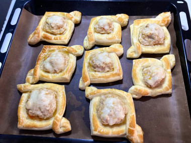 Помимо покупного, вы можете использовать и тесто собственного приготовления. Рецепт домашнего слоеного теста для этой выпечки вы можете выбрать в этом каталоге.