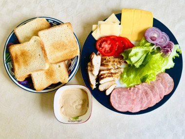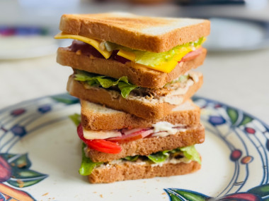 На завтрак приготовила рецепт клаб сэндвича с курицей. Уж очень аппетитно их подают в кафе.