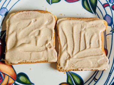 Положите сверху ещё один кусочек хлеба и снова обмажьте соусом.