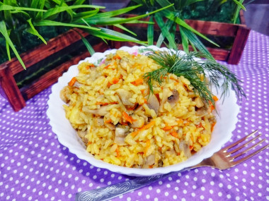Захотелось приготовить блюдо,где ингредиентами были бы рис и грибы. Нашла отличный рецепт плов с шампиньонами. Совсем просто готовить,а результат нас порадовал, получилось очень вкусно!