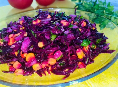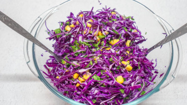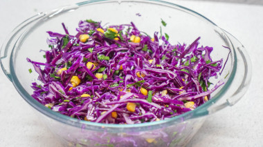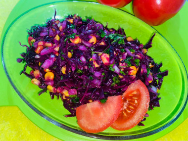 Обалденный салат из краснокочанной капусты с кукурузой! Какой же он красивый, вкусный. Легко и быстро готовиться.