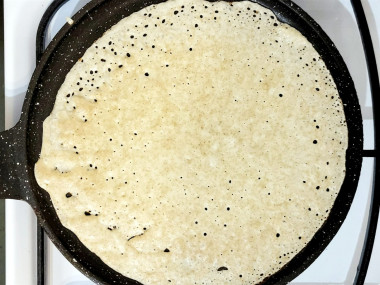 Учитывайте, что в этом рецепте важно использовать сковороду с хорошим антипригарным покрытием. Я пробовала жарить на плохом покрытии, перед каждым блином смазывая сковороду маслом. Это помогало, но местами блинчики приставали и рвались. На антипригарной сковороде они лучше пропекаются и чудесно отсоединяются.