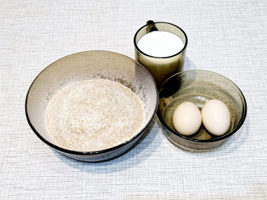 Как сделать блины из цельнозерновой муки? Подготовьте ингредиенты. Все продукты должны быть комнатной температуры, поэтому молоко и яйца нужно заранее достать из холодильника, примерно за 1-1,5 часа. Яйца используйте отборные и крупные. Цельнозерновая мука отличается от обычной муки более грубым помолом. В помоле участвует пшеничные зернышки целиком: не только сердцевина, но и внешняя часть. Обычная мука состоит только из внутренней части зерна.