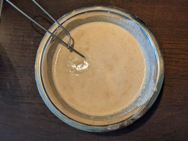 Все хорошо перемешайте венчиком до однородности. На этом этапе все комочки очень хорошо разбиваются благодаря вязкости теста.