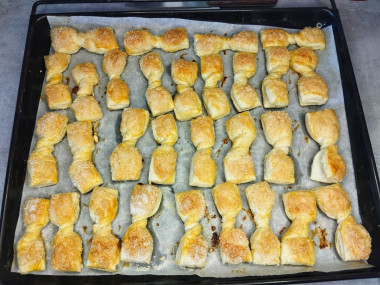Вы молодец, что так тщательно подошли к процессу: аккуратно раскатали тесто, сформировали бантики и щедро посыпали их сахаром. Приятного вам аппетита и новых кулинарных свершений!👏