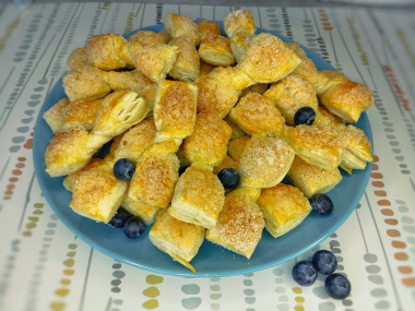 К чаю испекла слоёные бантики с сахаром. Готовое слоёное тесто очень выручает, когда нужно быстро и просто приготовить что нибудь вкусненькое. Спасибо автору за рецепт!