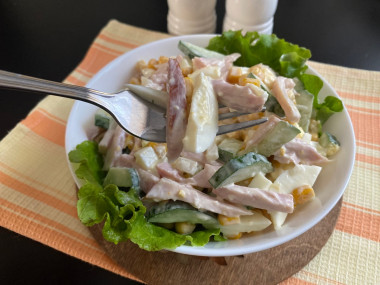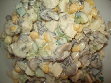 Салат с копченой курицей и кукурузой получился очень нежный. Пробовала у подруги такой, а тут благодаря сайту и сама сделала. Забрала в копилочку! Спасибо!
