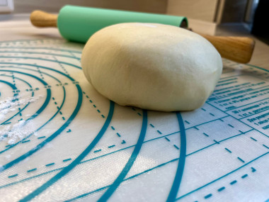 Замешанное тесто уберите в полиэтиленовый пакет и дайте ему отдохнуть минимум 30 минут. Это процедура с пакетом позволит тесту стать еще более мягким и эластичным, так как клейковина за это время разбухнет. Таким образом, в процессе раскатывания тесто рваться не будет.