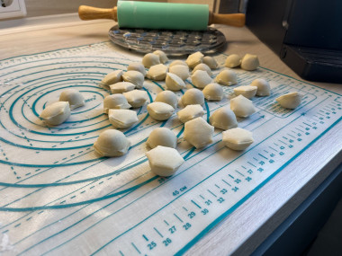 По данному рецепту тесто получается мягким и эластичным, с ним удобно работать. Пельмени в этот раз делала с помощью формы для лепки. Из указанного количества ингредиентов получилось 111 штук.