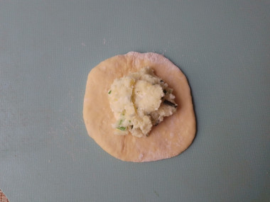 Подготовленное тесто разделите на кусочки. С каждого кусочка сформируйте лепешку, выложите начинку.