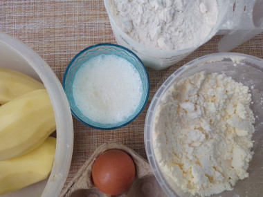 Начинку сделала из картофеля, творога и петрушки Посолила и поперчила.