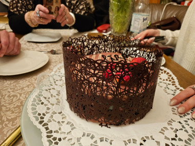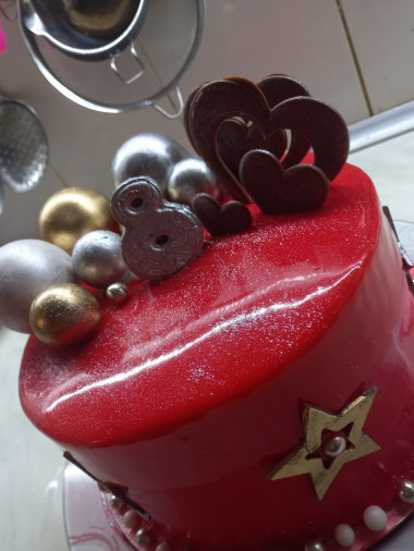 Понравился всем, только одно НО, мусса надо делать немного больше, у меня все формы были по размерам из рецепта, но как-то было маловато, может конечно я просто что-то не так сделала. Бока были очень не ровные, Пришлось сделать шокодекор, и получился "шедевр".