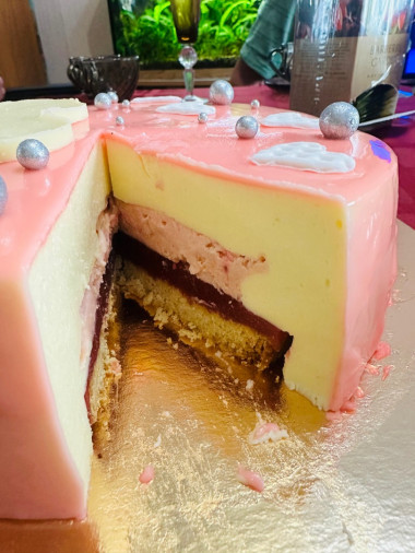 Спасибо большое за рецепт! Учусь готовить тортики для себя, для семьи и вот решила на бабушкин др приготовить такой потрясающий муссовый торт! Выбор пал на этот торт ещё и потому что нужно было везти его летом в другой город (должны были уложиться часа за 3, а в итоге ехали аж 4.20 по пробкам). Торт доехал в ИДЕАЛЬНОМ состоянии! Конечно, в машине работал кондей, а мы тепло оделись.