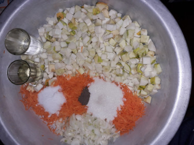 6. Смешайте патиссон, морковь, лук и чеснок.