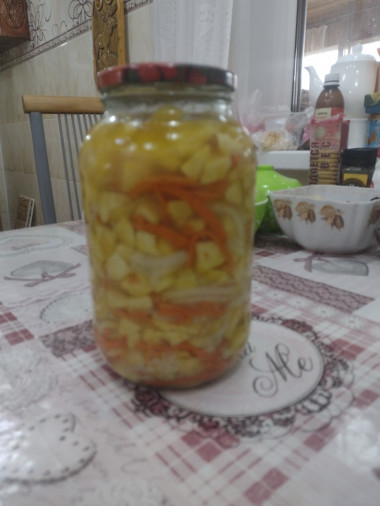 Очень заинтересовал рецепт приготовления патиссонов на зиму. Раскладка рецепта на 3 кг. Но у меня столько паттисонов не оказалось. У меня был 1 кг. Поэтому всю раскладку ингредиентов я поделила на 3. Я делила на три , потому что патиссоны - основа рецепта, а их меньше в три раза. Далее я все делала по рецепту . Результат получился восхитительным. Патиссоны хрустящие. Лук промариновался как к шашлычку. Морковь получилась как в салате " Морковь по - корейски ". Отличный вариант холодной закуски. Ставлю рецепту отлично : за простоту , быстроту и потрясающий вкус!