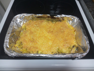 Готовое блюдо станет золотистого цвета. Сыр полностью расплавится и немного подрумянится. Извлеките форму из духовки, немного остудите и подавайте к столу!