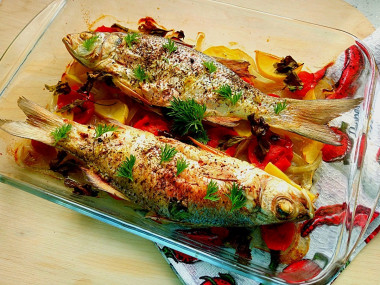 Сибаса запеченного в духовке мы еще не пробовали, но в магазине увидела эту рыбку и захотелось узнать какова она на вкус. Рыбки не большие, поэтому взяла две штуки себе и мужу, как раз по одной на порцию. По рецепту понятно, что эта рыба не требует какой-то особой подготовки и запекается быстро. Немного потратила времени на чистку и потрошение. Рыбу хорошо сбрызнула лимонным соком, хотя рыбный запах был не сильный, что удивительно) Тушки натерла универсальной приправой, посыпала сушеным укропом и базиликом, взамен свежего. А в брюшко вложила веточки петрушки. Для овощной подушки кроме помидор и лука добавила буквально одну картофелину, нарезанную дольками. Запекала при 200 градусах пол часа, за это время рыба успела приготовиться, даже румяная корочка появилась. Ну что же, сибас оказался совершенно не костлявой рыбой, это очень порадовало) Мясо белое, суховатое, похоже на судака. Никаких неприятных запахов нет, наоборот пахнет лимончиком) А на вкус нам рыба понравилась, особенно в купе со специями и овощным гарниром. Кстати, картошка стала сладкой почему-то. Рыбка вкусная получилась, будем еще готовить ее.