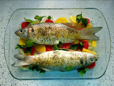 Свежую рыбу необходимо очистить. Сделайте на брюшке продольный разрез и извлеките из неё внутренности. Затем рыбу хорошо промойте в проточной воде. Аккуратно - у рыбы острые плавники. По желанию их можно удалить. Чтобы рыбу красиво подать к столу, голову и хвост лучше не отрезать.