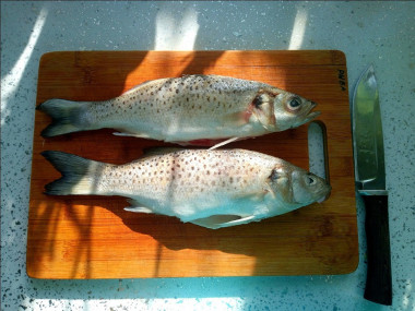 Сбрызните рыбу внутри и снаружи небольшим количеством лимонного сока. Это уберет неприятный, навязчивый рыбный запах.