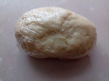 Когда вся мука вмешается в тесто, переложите его на стол и продолжите замес на нем. Тесто без воды, поэтому оно получается очень крутое.