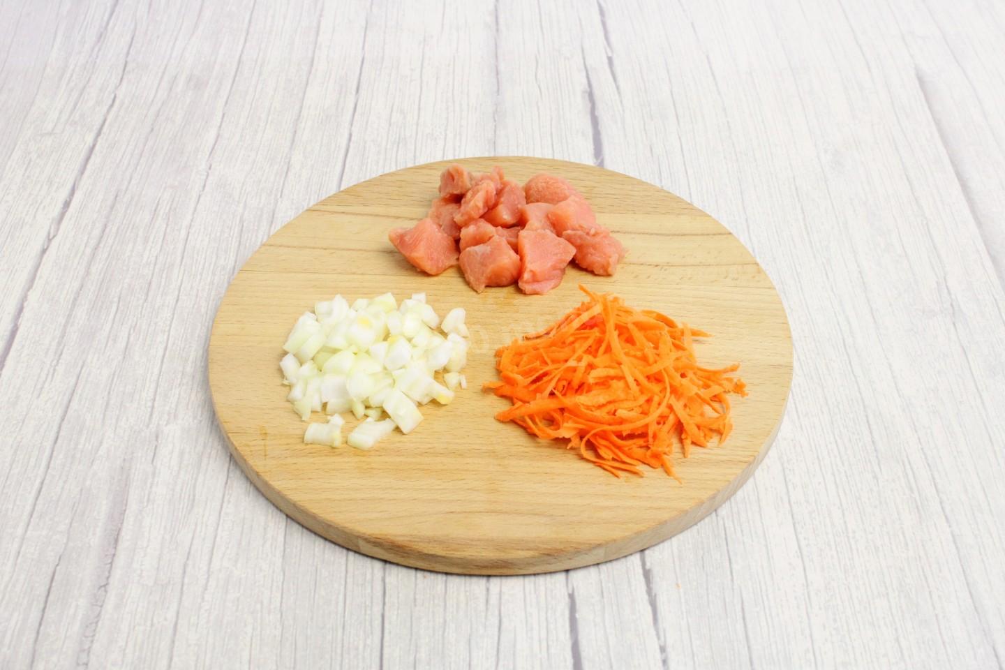 Филе рыбы нарежьте небольшими кубиками. Овощи очистите, сполосните. Нарежьте репчатый лук мелкими кубиками. Морковь натрите на крупной терке.