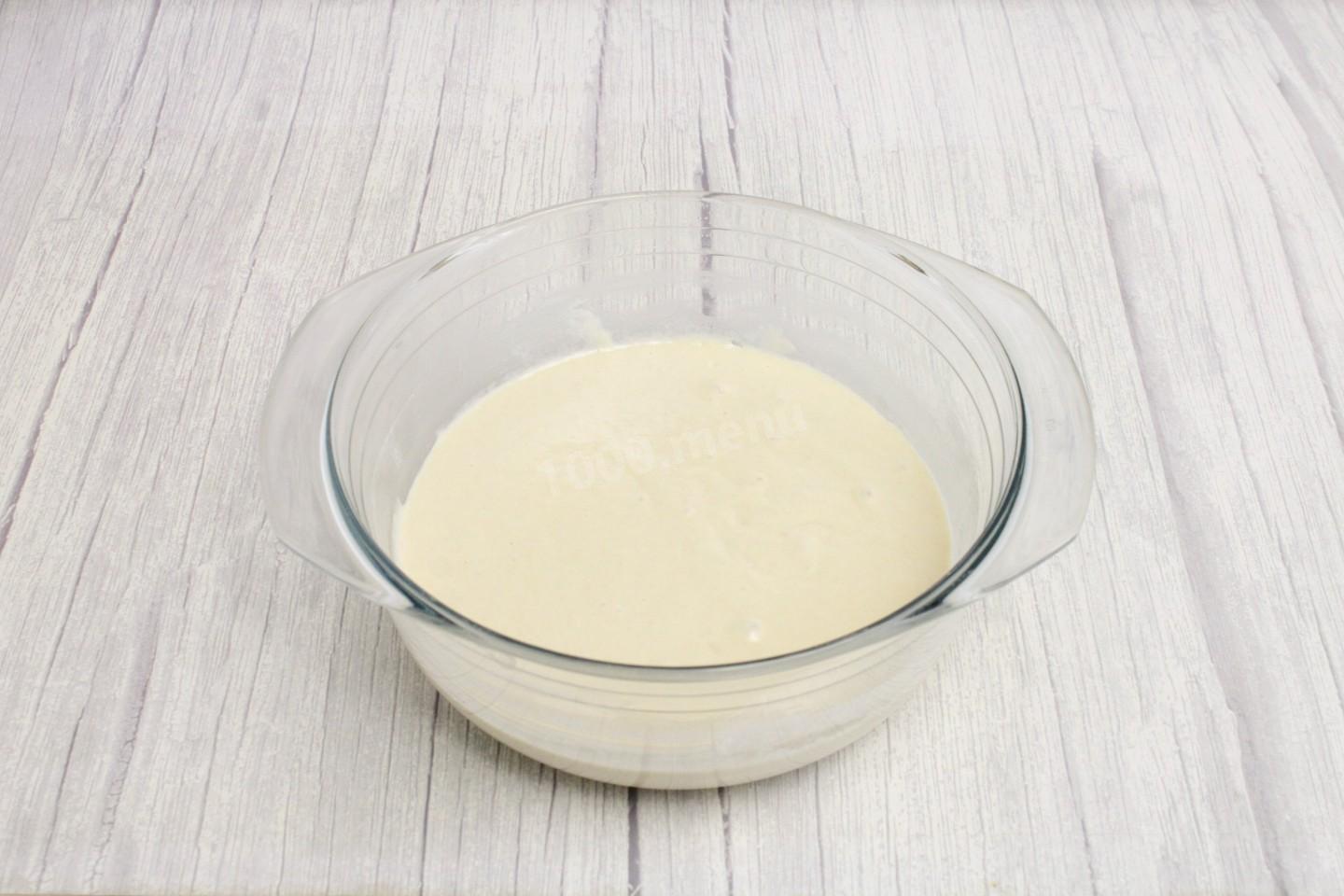 Просейте частями муку, смешанную с разрыхлителем. Просеять муку нужно обязательно. Просеивание насыщает муку кислородом, что обеспечивает лучший подъем выпечки при выпекании. Перемешайте тесто венчиком до однородности. Тесто по консистенции похоже на густую сметану. Муки может понадобиться меньше или больше. Информацию о свойствах муки, а также о консистенции теста для заливного пирога и нюансах его выпечки читайте после описания шагов по ссылкам.