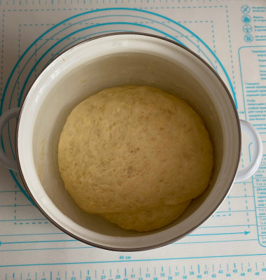 При необходимости подсыпайте муку — смотрите по тесту, оно должно перестать липнуть к рукам. Но не переборщите — тесто, забитое мукой, станет жестким при выпечке. При долгом замесе тесто само перестанет быть липким, наберитесь терпения. Готовое тесто соберите в шар, положите в миску и накройте полотенцем.