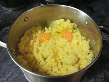 Когда картофель немного остынет, разбейте в него яйцо. Насыпьте перец, при необходимости добавьте еще соли.