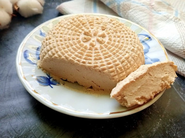 Домашний сыр из кислого молока я начала делать с вечера. Молоко у меня было не простое, а топленое. Вдобавок добавила паприку и получился красноватый оттенок. Соединила молоко со взбитым яйцом и варила на медленном огне до отделения сыворотки. Затем творожную массу переложила на чистое хлопковое полотенце. Сыворотки вышло примерно 600 мл. Творожную массу отжала и положила под пресс до остывания. Затем убрала в холодильник. Головка получилась массой 220 г. Кстати в первый раз воспользовалась специальной посудой для сыра) К утру сыр хорошо охладился и можно было завтракать. По консистенции он мягкий, его лучше всего намазывать на хлеб. На вкус мой сыр имеет привкус топленого молока, а вообще он нейтральный. Думаю соли нужно брать чайную ложку с небольшой горкой. Мне нравится такой нежный домашний сыр.