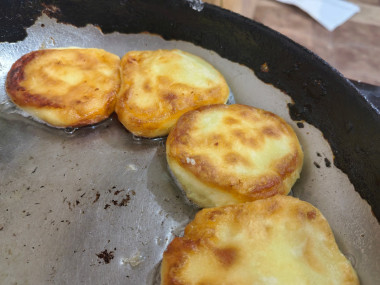 Планировку я не делаю, чтобы муки было минимум. Сырники без неё не липнут к сковороде. А вот форму леплю, смачивая руки в холодной воде, так тесто и к рукам не прилипнет.
