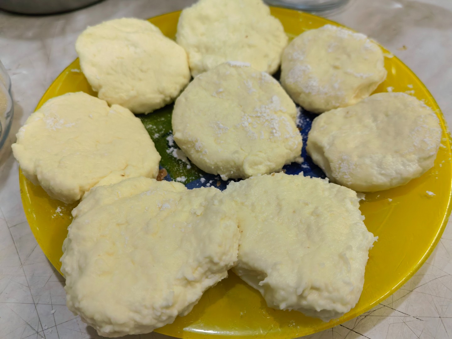 Прочитала, что получается только 10 сырников, поэтому все увеличила в 2 раза и взяла 3 яйца.