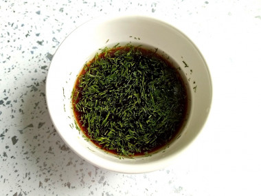 Добавьте в чашу растительное масло и соевый соус. Все ингредиенты смешайте.