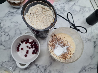 В овсяную муку добавьте разрыхлитель, ванилин и корицу. Перемешайте.